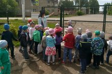 В рамках реализации плана на летний оздоровительный период, в детском саду завершается проектная неделя на тему «Азбука дорожной безопасности». В течение недели с детьми проводились тематические беседы, отрабатывались навыки безопасного поведения на улице на территории детского сада, проводились наблюдения и конкурсы детских рисунков по теме. На фото: воспитатель Салахова Г.И. проводит беседу и наблюдение со своими подопечными.