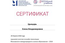 Сегодня старший воспитатель Цынцарь Е.В. приняла участие в ряде интерактивных вебинаров, организованных Московским Международным Салоном Образования, корпорацией «Российский учебник» и издательством «Дрофа-Вентана»: «Особенности организации современной образовательной среды в школах России и за рубежом», «Педагогика для всех. Воспитание сердца», «Активизация познавательной деятельности на уроках истории и обществознания с помощью дополненной реальности».