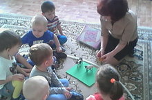 Воспитатель ясельной группы № 2 Миндубаева С.Х. закрепляет знания детей татарского языка в форме напольного театра.