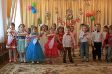 Праздничный утренник в подготовительной группе.В первый весенний праздник,Мы маму свою поздравляем.И много деньков прекрасныхМы маме своей желаем.Желаем тебе быть здоровой,Красивой всегда оставаться.И будем мы снова и сноваУлыбкой твоей восхищаться! -