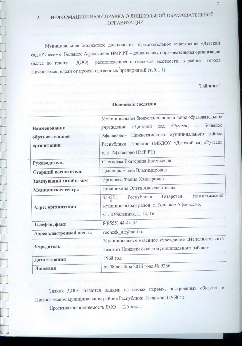 Муниципальное бюджетное дошкольное образовательное учреждение «Детский сад «Ручеёк» с. Большое Афанасово" Нижнекамского муниципального района Республики Татарстан