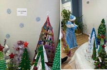 В Большеафанасовской школе организована Новогодняя эко-выставка елей, выполненных руками детей и родителей 1-8 классов из бросовых материалов "Сказочный лес".