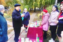 Члены кружка "Добродел"посетили на дому ветерана педагогического труда Биткину Л.Г. и вручили продуктовый набор.