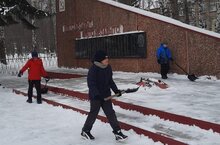 Чистить памятник, ребята!