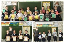 Сегодня были подведены итоги олимпиады по математике среди 1-4 классов, Акции «Лучшая тетрадь по русскому языку и математике», конкурса рисунков "Солдатами не рождаются". Победители были награждены дипломами.