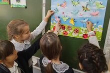 За окном холодно и сыро, а в кабинете 2 А класса снова лето! Ребята на занятии кружка "Чудеса своими руками" сегодня сотворили маленькое чудо - коллективную картину "На лугу".