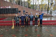Трудовой десант 2 б класса на территории памятника. Классный руководитель Замалетдинова Й. И.