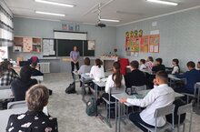 Представитель из инициативной группы "Твори добро Нижнекамск", "Ассоциации: Нижнекамский Гуманитарный Центр" - Тухватуллина Елена Николаевна провела для учеников антинаркотическую лекцию.