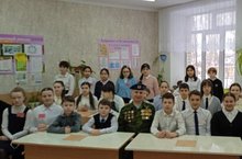 В 7-а классе прошёл классный час по теме "Солдат войны не выбирает", на котором выступил участник военных действий в период "Чеченской войны" Сандимиров Александр Михайлович. Он рассказал ребятам, как с первых дней чеченской войны российские солдаты проявляли мужество и отвагу, о своих друзьях. Такие встречи не забываются!