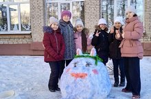Заскучали фигуры нашего снежного городка в долгие зимние каникулы! Мы очистили от снега своего колобка в награду за его улыбку!!! 6а класс, Цыганова В.М.