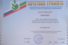 МБОУ "Зур Афанас урта гомуми белем бирү мәктәбе" нең физкультура һәм тормыш куркынычсызлыгы нигезләре фәне укытучысы Кузнецов Алексей Анатольевич Татарстанның Түбән Кама муниципаль районы мәгариф хезмәткәрләре арасында үткәрелгән 21 Спартакиада зачетында шашка буенча 2 нче урынны алды һәм Почет грамотасы белән бүләкләнде. Без, барлык укытучылар, җиңү яулаган хезмәткәрләребезне чын күңелдән котлыйбыз, аларга киләчәктә тагын бөек үрләр яулавын теләп калабыз.