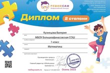 26 октября 2022г. мы с учащимися 1Б класса приняли участие во Всероссийской олимпиаде по математике и логике "Решаю сам". Зотина Варвара и Кузнецова Валерия награждены дипломами II степени. Молодцы!!! Примите поздравления!!!
