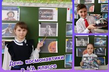 В День космонавтики в 4 А классе прошёл классный час "Освоение космоса." Ребята посмотрели видеофильм, узнали много интересного о космическом пространстве, сделали поделки и нарисовали рисунки на тему "Космос". А "космические" шлемы к лицу всем! Классный руководитель Донскова С.А.