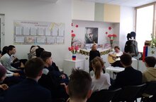 В день вывода войск с Афганистана, члены кружка "Добродел" и юнармейцы посетили Мельникову О.Д., вручили продуктовый набор. Старший сын Анатолий прошел Афганскую войну, младший сын Сергей -Чеченскую. Оба -выпускники нашей школы.