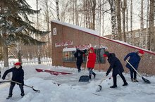 Члены отряда Юнармия очистили от снега территорию памятника воинам Великой Отечественной войны.