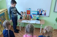 Сегодня в нашем детском саду в честь Дня России с детьми была проведена беседа о нашей стране, дети вспомнили о символике, о русско- национальных костюмах, о блюдах, о балалайке, о матрёшке. У детей формировалось представление о России, как государстве, о родной стране, воспитывалось чувство любви и патриотизма к родному краю, Родине. Ребята читали стихи о Родине, мастерили флаги России, маршировали с ними.