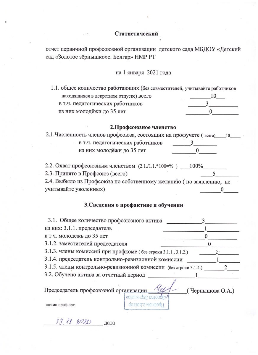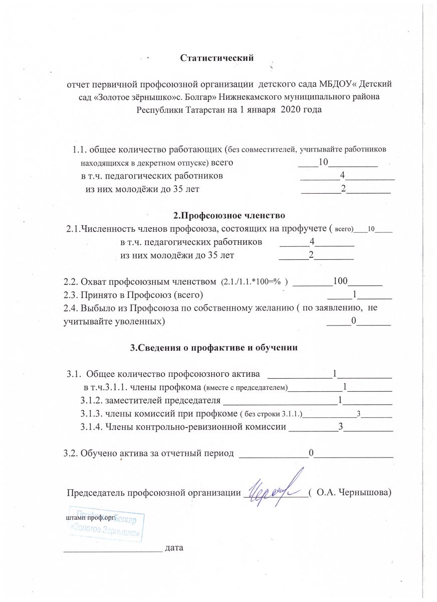 Формы отчётности первичной профсоюзной организации МБДОУ "Детский сад "Золотое зёрнышко"с. Болгар" НМР РТ