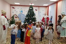В детском саду начались Новогодние утренники. В гости к детям пришли Дед Мороз, Снегурочка, Снеговичок, Баба-яга... Ребята вместе со сказочными героями пели песни, водилм хороводы вокруг елки, читали стихи и, конечно же, играли с Дедом Морозом!