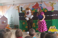 Сегодня в нашем детском саду представленна сказка "Добрая сказка", по правилам дорожного движения. Волшебный мир забавных кукольных героев увлек детей в интересное сказочное путешествие. А ростовая кукла вызвала несомненный восторг у маленьких зрителей. Помогая героям сказки, дети вспомнили и закрепили правила дорожного движения.