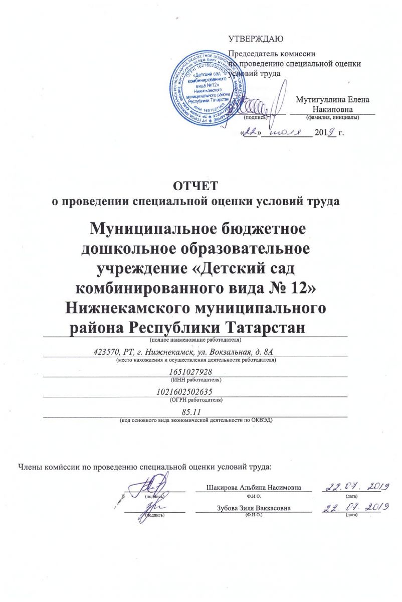 муниципальное бюджетное дошкольное образовательное учреждение "Детский сад комбинированного вида № 12" Нижнекамского муниципального района Республики Татарстан