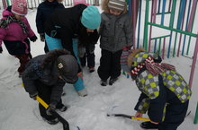 На территории д/с № 13 было проведено спортивное мероприятие, посвященное 70-летию Победы "ЗАРИНИЦА". Мы разработали и представляем зимний вариант игры, в котором участвует один отряд, выполняющий важное «боевое задание». Игра представляет собой имитацию военных учений, с элементами соревнования в различных военно-прикладных видах спорта, иговыми элементами. При прохождении маршрута отряд выполняет различные задания. В игре каждому ребенку отведена определенная роль: разведчика, связиста, стрелка, санитара, сапера, командира отряда, требующая проявления смекалки, выносливости, дисциплины.