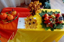 Сегодня в детском саду была организована выставка поделок из овощей.Родители совместно с детьми представили замечательные композиции.