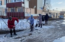 Сотрудники детского сада вышли дружно на весенний субботник по очистке и раскидыванию снега на прилегающей к нему территори.