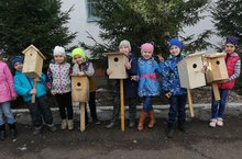 В ДОУ прошла акция "Скворечник. Дошкольники совместно со взрослыми мастерили скворечники. Сегодня развешивали скворечники. Пусть у птиц будут домики!
