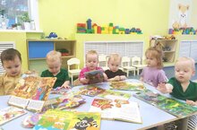 Очень важно, чтобы годовалый малыш имел доступ к книгам, просматривая иллюстрации и слушая тексты сказок и стишков. Книга способствует развитию внимательности и памяти. Наши малыши группы раннего возраста №2 знакомятся с окружающим миром, рассматривая красочные картинки и книжки.