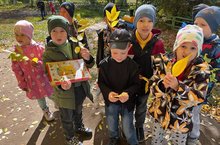 Воспитанники подготовительной логопедической группы №8 , во время прогулки собирали красивые листья деревьев для гербария. -