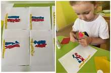 В честь праздника День России, ребята сделали аппликацию "Российский флаг". Воспитатели формируют у детей чувство патриотизма, гордость за свою Родину, любовь к родному краю