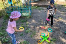 Летние деньки в детском саду проходят весело и интересно. Ребята развивают силу и ловкость при помощи активных спортивных игр.