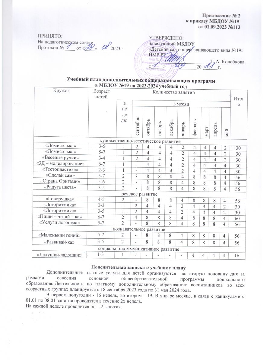 МБДОУ "Детский сад общеразвивающего вида № 19" Нижнекамского муниципального района Республики Татарстан в летний период дополнительные платные образовательные услуги не оказывает.