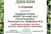 13 воспитанников приняли участие в районном конкурсе детского рисунка "Наши бравые защитники" 03.03.2023