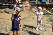 Спортивные игры на летней спортивной площадке в старшем дошкольном возрасте. Футбол и пионербол в старшей группе №5. Воспитатель Докучаева В.Ф.. 26.07.2021
