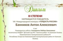 VIII Международный конкурс "ГОРДОСТЬ РОССИИ". Банников Антон, воспитанник старшей группы №10 и воспитатель Енизеркина Любовь Николаевна, победители в номинации "Светлая Пасха"- Диплом III степени. Поздравляем! 16.04.2020