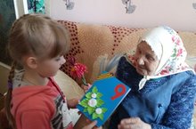 Дети сделали поздравительные открытки и гвоздики сделанные своими руками, подготовили мини-концерт. Посетили ветеранов дома вручили подарки, рассказывали стихи и пели песни. Также на средства полученные с благотворительной выставки - продажи "Добрая ярмарка" были собраны продуктовые наборы, которые вручили сотрудники детского сада. Ветераны были очень благодарны детям. Дети с гордостью рассказывали как их встретили старшее поколение.