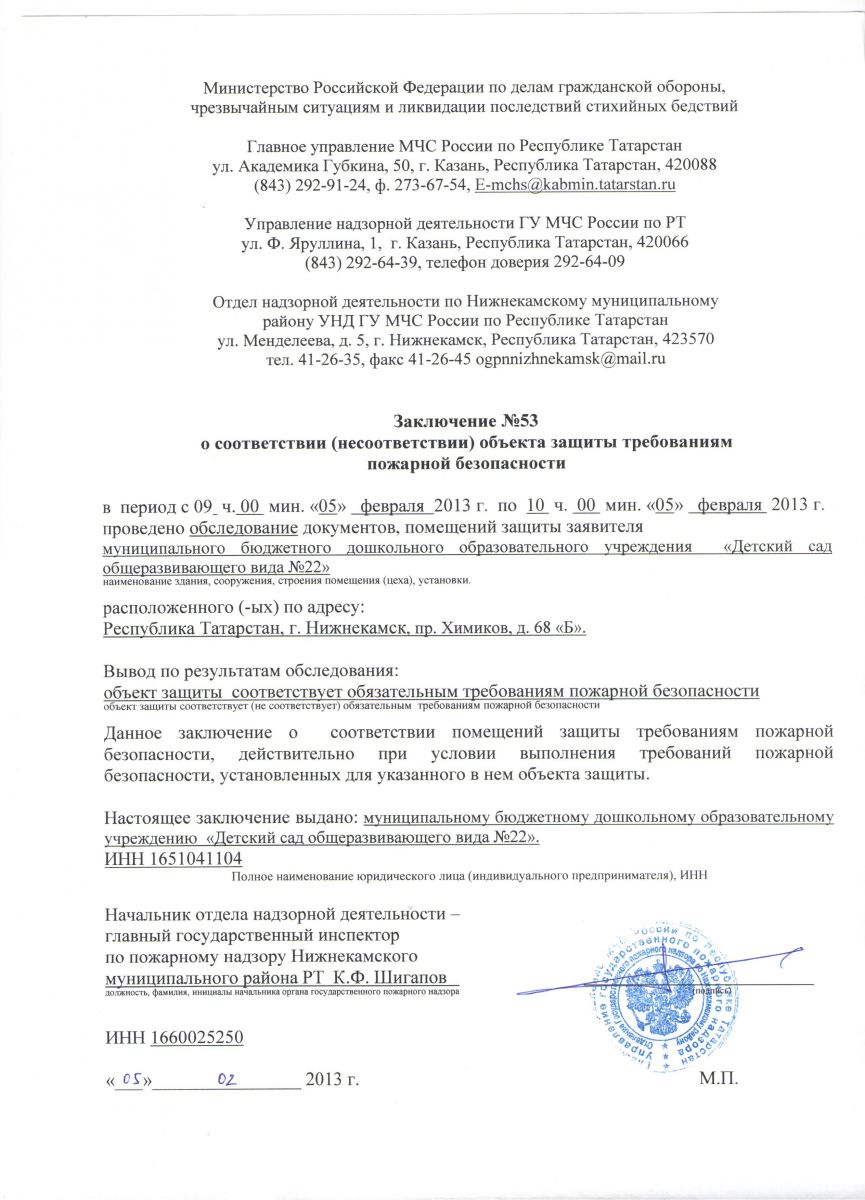 - Заключение о соответствии объекта защиты обязательным требованиям пожарной безопасности