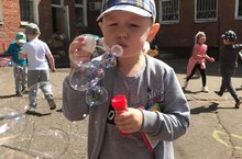 Сегодня в детском саду прошло шоу мыльных пузырей.