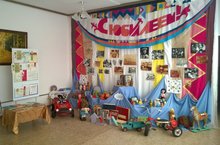 В честь 40-летнего юбилея детского сада организована выставка ретро-игрушек "Путешеествие в прошлое". На выставке представлены игрушки времен СССР.