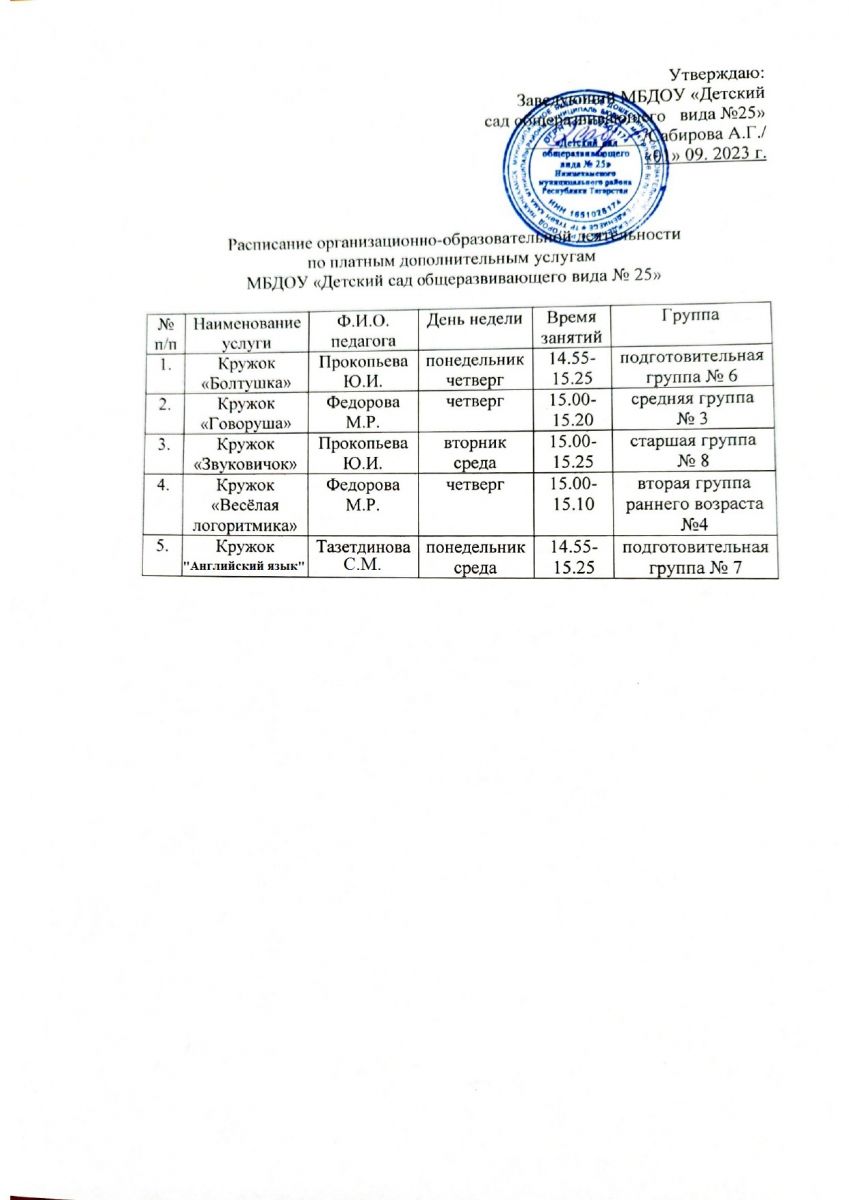 Приказ об утверждении перечня платных услуг в дошкольном образовательном учреждении