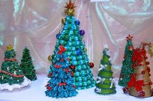 Родители вместе с детьми создавали из бросового материала елочки, которые после украсили выставку в детском саду.