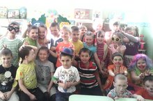 С самого утра дети в шуточных костюмах и разукрашенными лицами играли в разные веселые и подвижные игры. Настрение было отличное, веселое и все зарядились энергией на весь день.