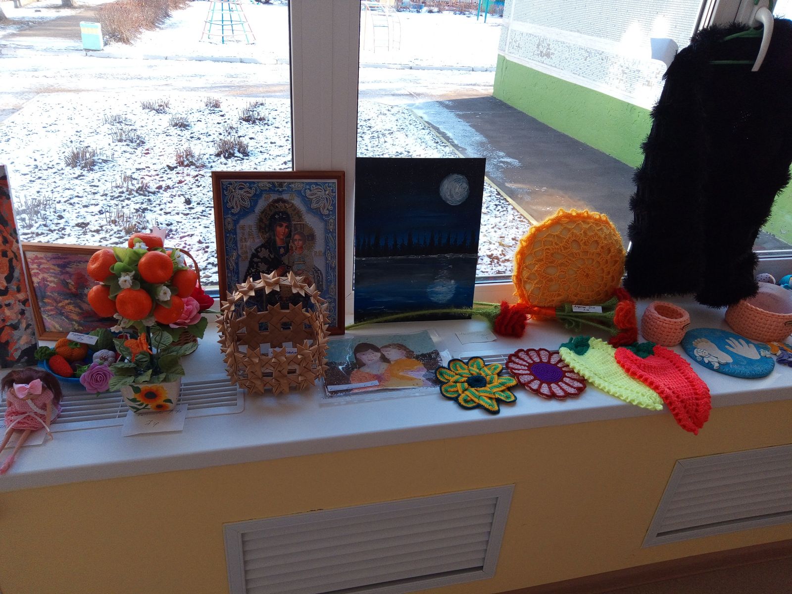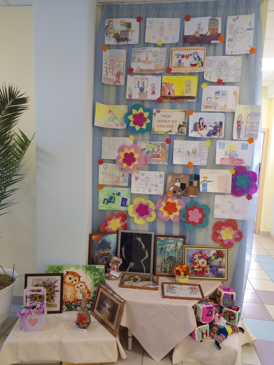 Выставка раскрывает сущность МАМЫ: она успевает и работать, и вышивать, и вязать, и лепить, и мастерить, и рисовать.
