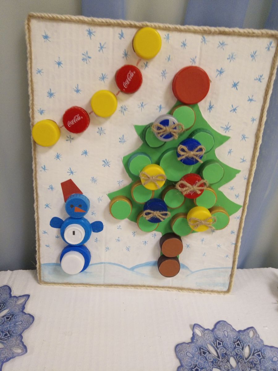 Опубликовано: 20.12.2019В канун Нового года родители, воспитанники и педагоги изготовили объемные и плоские игрушки, панно из пластиковых крышек. Холл детского сада украсили вертолеты, звезды, снеговики, елочки, рыбки, елочные игрушки, домики...