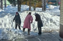 В детском саду проходят средники по рыхлению снега.