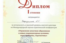 Сегодня три педагога детского сада во главе с заведующим Шумилиной В.Н. приняли участие в международной конференции на тему: «Управление качеством образования в новых социокультурных условиях: опыт, проблемы, перспективы» , кооторая состоялась на базе МБДОУ №91.