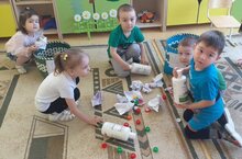 Воспитанники подготовительной группы приняли участие в акции #Георгиевская ленточка", украсив её своими руками алой гвоздикой, со словами поздравлений торжественно вручили жителям микрорайона.