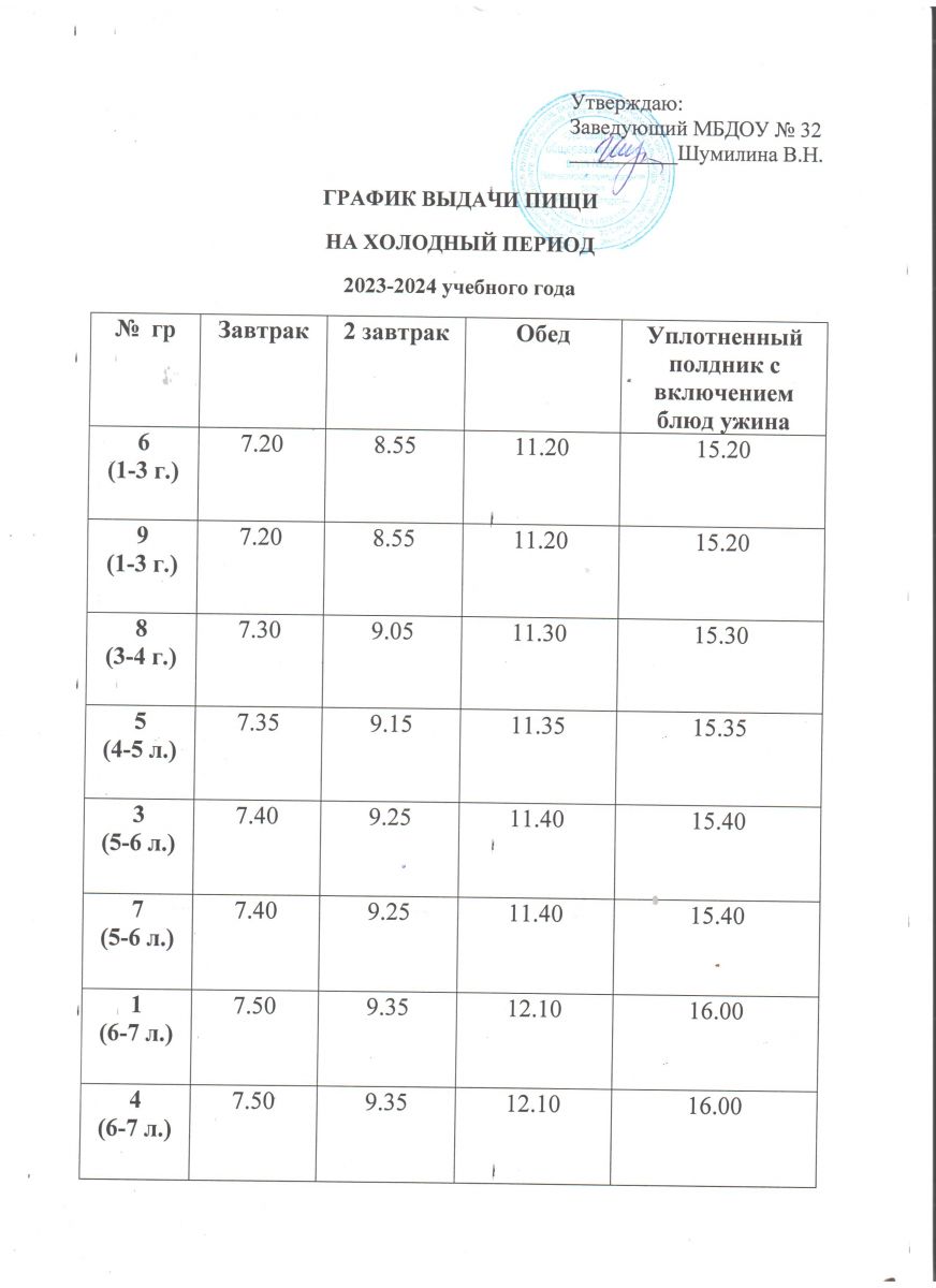 График выдачи пищи на холодный период на 2023-2024 учебный год