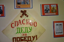 Сегодня в нашем детском саду открылась вторая экспозиция, посвященная 70-летию Победы в ВОВ. Мы назвали ее "Спасибо, деду за победу". В экспозиции фотографии 25 дедушек и бабушек фронтовиков и их дети, внуки, правнуки.Выставка пользуется очень большой популярностью у детей, родителей воспитанников и сотрудников детского сада.